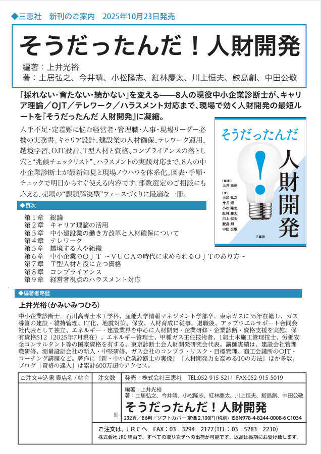 東京都中小企業診断士協会 人財開発研究会の仲間と共に執筆した共著で、私は第8章「コンプライアンス」を担当しました。